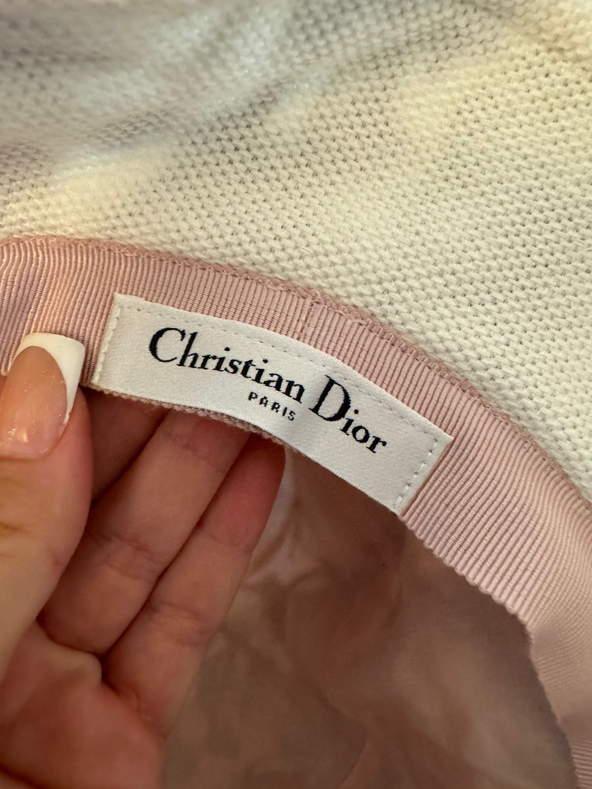 Contrasting embroidered band with Christian Dior Paris signature