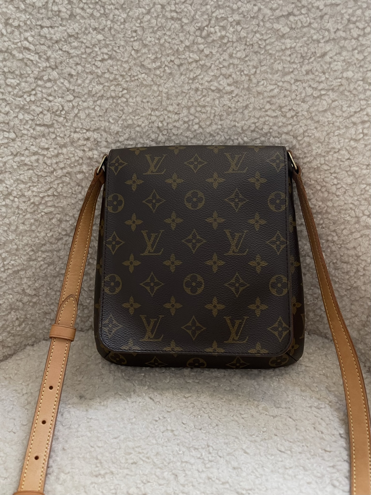 featuring brown, signature Monogram canvas, leather trim, adjustable shoulder strap, front flap closure, main compartment, internal logo stamp, gold-tone hardware and circa 2007. A simple and practical bag, its lovely and light to carry, very easy to use and one of LV’s timeless design classics.